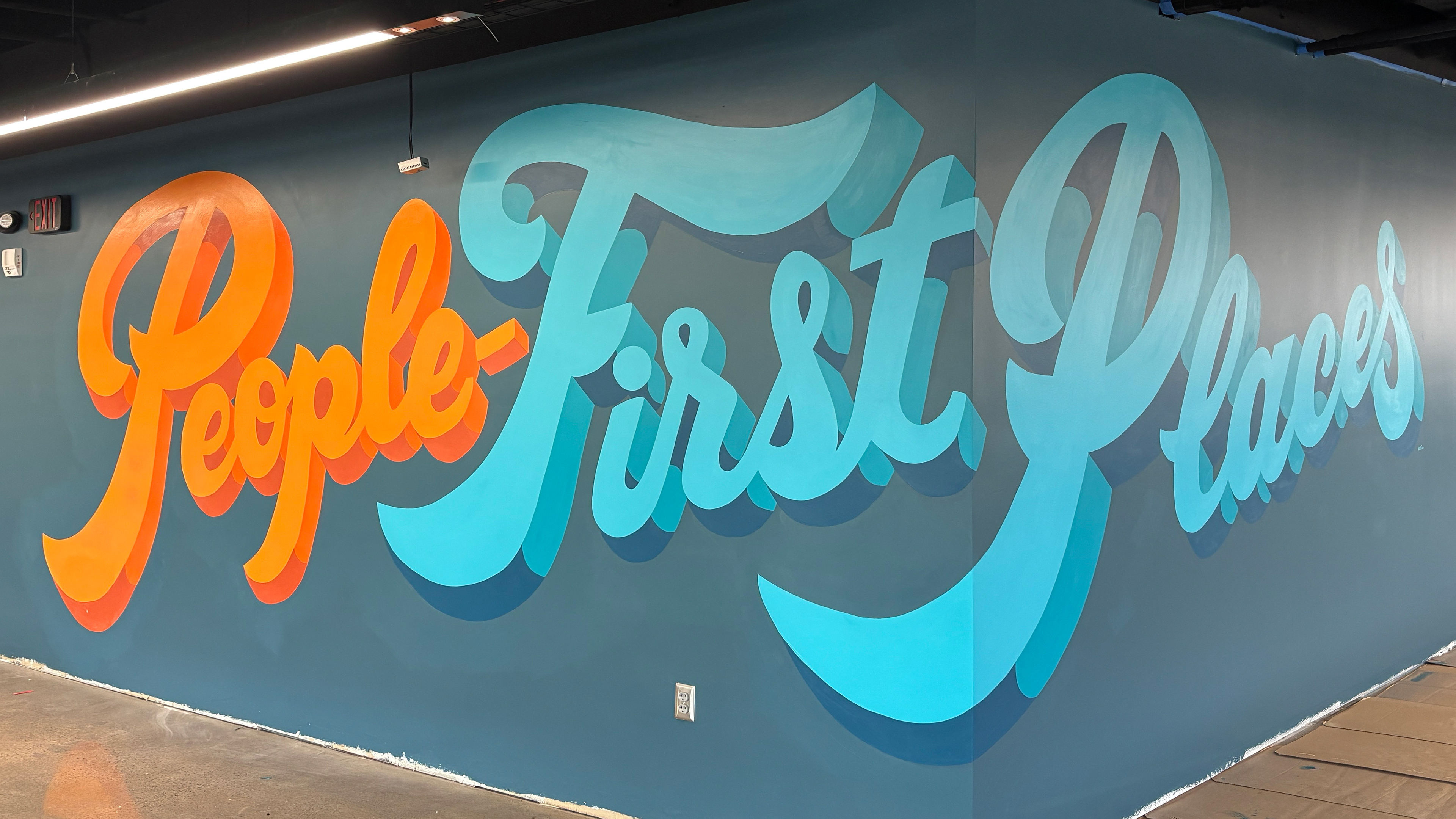 Mural for Design Collaborative office spaces in downtown Fort Wayne, IN. First painted in 2017 and was asked back to repaint after their recent remodel of the entire space.