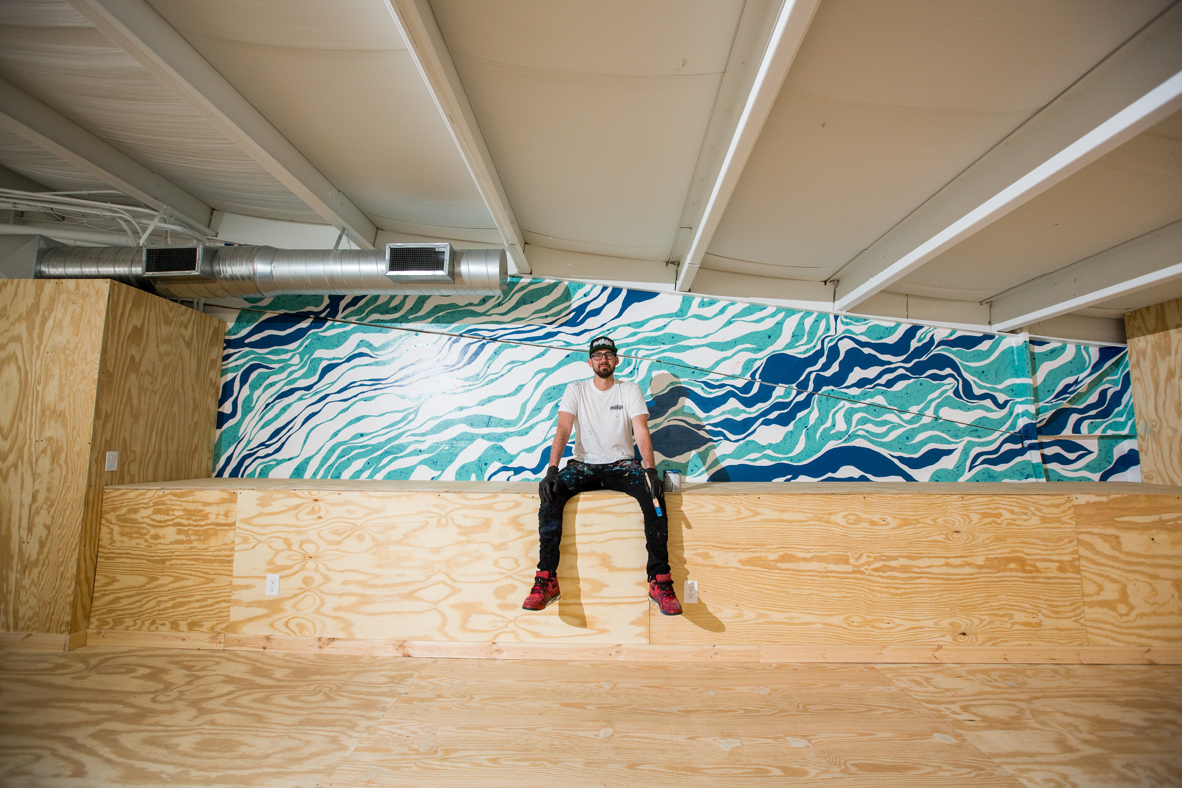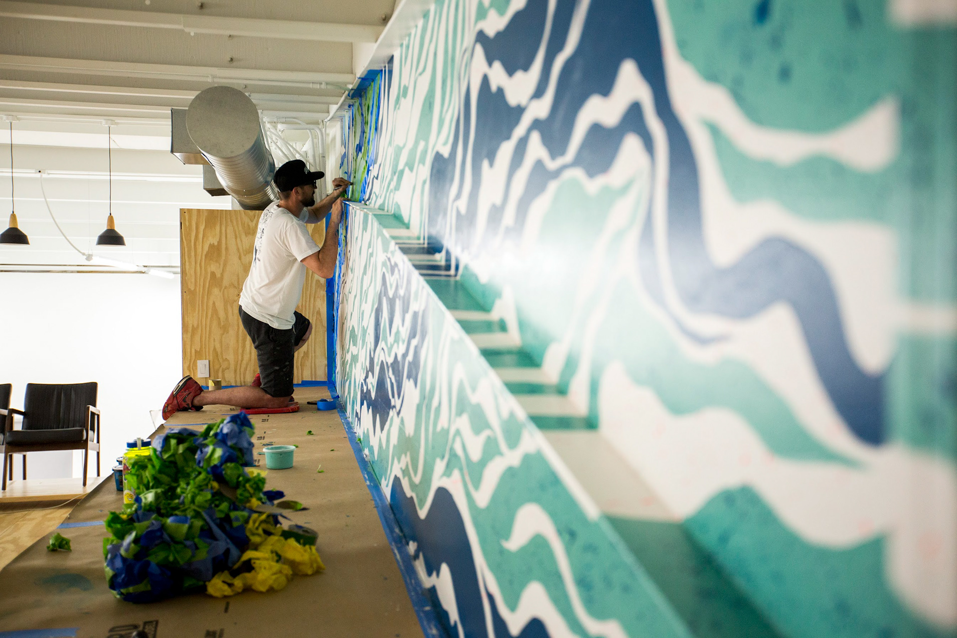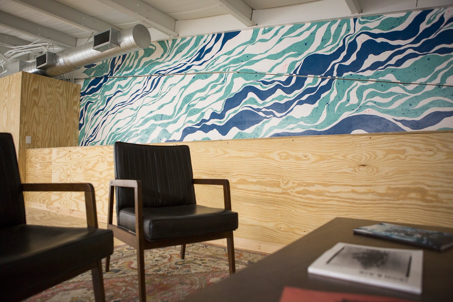 Mural for Anchor Films in Fort Wayne, IN. This mural is a mixture of friendship, growth, Iceland topography, design dreams and the movement that forms who we are constantly each becoming.