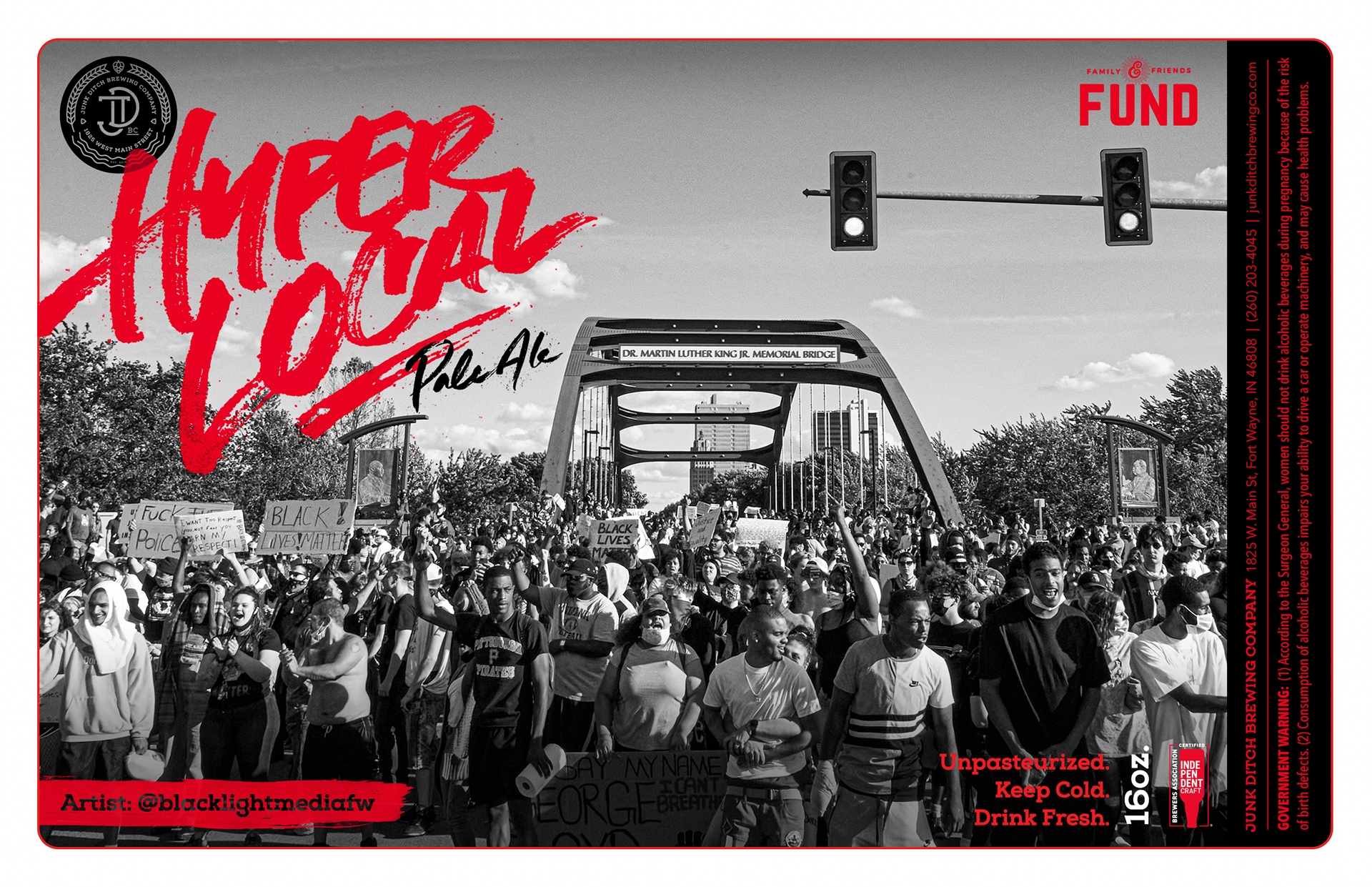 Designed lettering and label design collaborating with local artists @blacklightmediafw @thatlaundry & @afroplump. A collaboration beer with proceeds going to @hyperlocalimpact and the family & friends fund.
