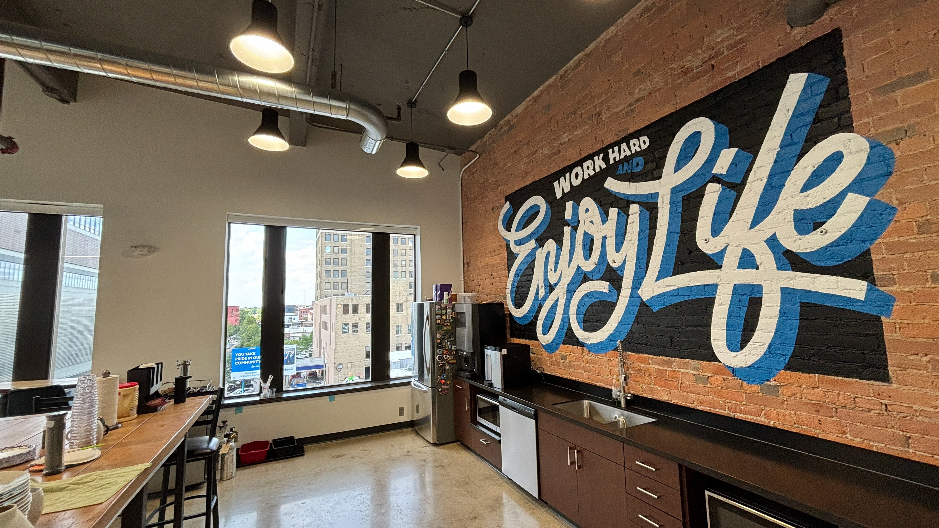Q-Sys reached out to paint a mural in their newly renovated space in downtown Fort Wayne.